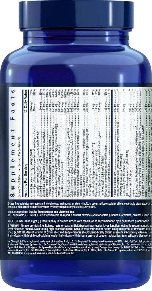 High Potency Life Extension Mix™ Tablets with Extra Niacin - Advanced Whole-Body Health Formula with Vitamins, Minerals, Fruits & Vegetables - Gluten-Free - 240 Tablets