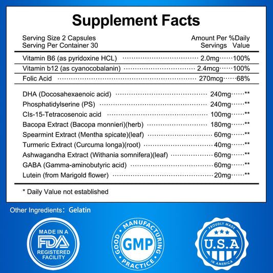 Study Memory & Focus Strength Supplement with DHA, PhosphatidylSerine, Turmeric, & More - 90 Capsules for Mental Clarity & Cognitive Enhancement