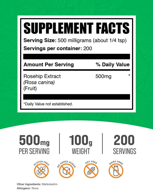 Rosehip Extract Powder - Herbal Antioxidant Supplement, Gluten-Free, 500mg per Serving - 100g (3.5 oz) Pack of 1