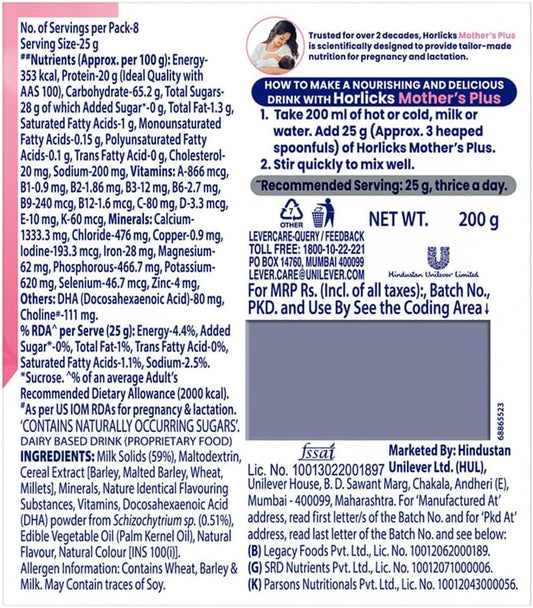 Pregnancy and Lactation Nutritional Supplement with Protein, DHA, Vitamins, and Minerals - Swiss Chocolate Flavor, 200g