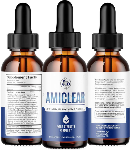 Amiclear Healthy Support Supplement Drops - Official Formula (2 Pack) - Amiclear Alternative to Pills - New 2023 Formula