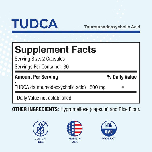 Puregen Labs TUDCA Liver Supplement - 500mg per Serving - Bile Salts with No Additives - Non-GMO & Gluten Free - Made in USA - 120 Capsules