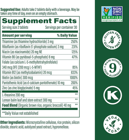 L-Theanine & Vitamin B Complex Supplement - 200mg L Theanine with B Vitamins, Lemon Balm Leaf & Zinc - Vegan, Gluten Free, Non-GMO - 60 Tablets