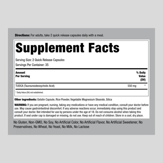 Tudca Supplement 550mg 70 Capsules - Tauroursodeoxycholic Acid - Non-GMO & Gluten Free