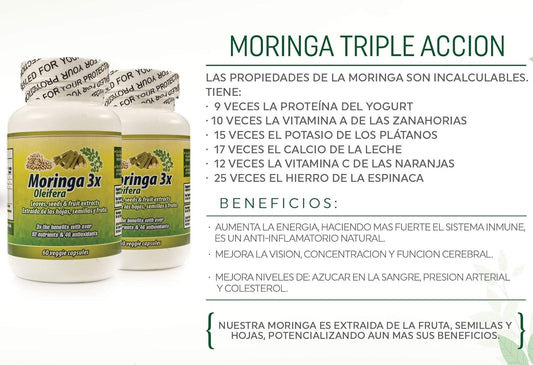 Set de 2 frascos de Capsulas de Moringa Nutrisalud con Triple Acción - Proteínas, Vitaminas y Minerales - Extracto de Planta, Fruta y Semillas