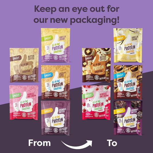 Variety Pack Grass-Fed Whey Protein Smoothie Powder with Collagen - Gluten-Free Pre & Post Workout Drink - 5 Single Serve Packets