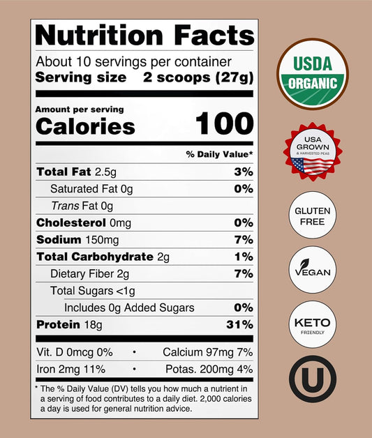 Organic Vegan Protein Powder with American Grown Peas - Gluten Free, Low Carb, Dreamy Chocolate Flavor - 20 Servings by NUFYX®