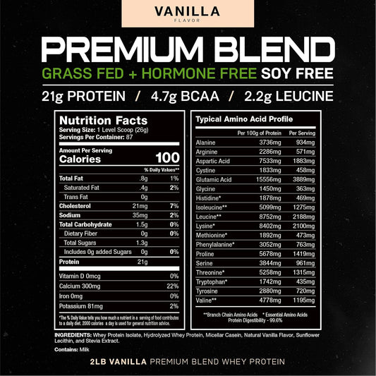 Muscle Feast Grass Fed Premium Protein Blend - Vanilla, 5lb - 21g Protein, 100 Calories - Whey Protein, Hydrolyzed Whey, Isolate, Micellar Casein