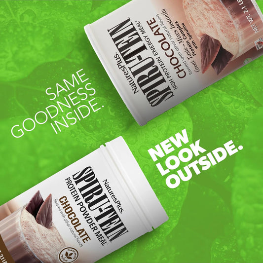 Natures Plus SPIRU-TEIN Chocolate Plant-Based Protein Shake 2.1 lb Pack of 2 Non-GMO Vegetarian Gluten Free 68 Servings