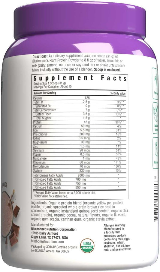 Organic Plant Protein Powder - 18g Protein, 3.5g Fiber - Chia, Quinoa & More - Vegan, Non-GMO - USDA Organic, Chocolate Flavor - Gluten, Soy & Milk Free - 1 LB