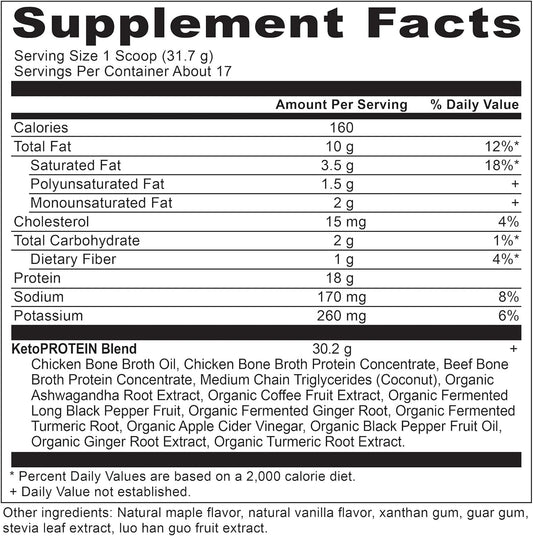 KetoPROTEIN Chocolate Powder with Bone Broth & MCT Oil - 18g Protein, 10g Fat, Gluten Free, Low Carb, Paleo Friendly - 17 Servings