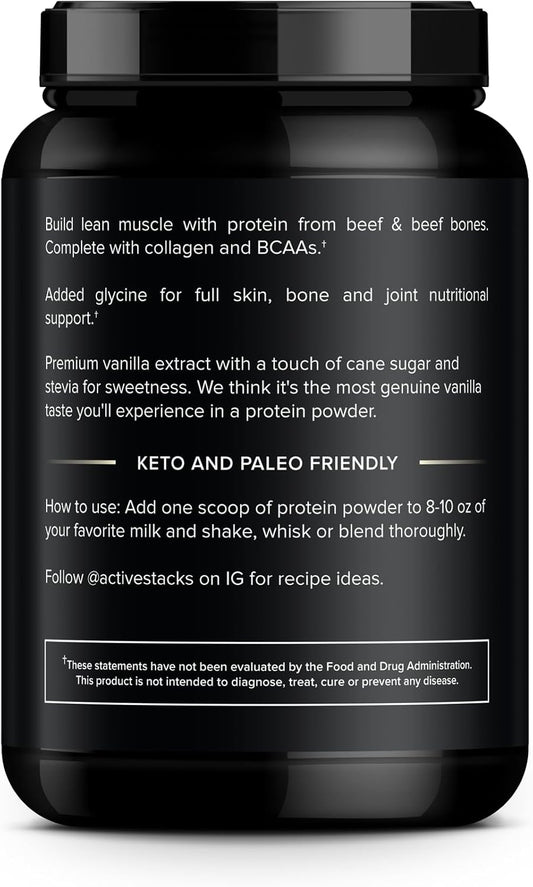 Vanilla Beef Protein Powder with Natural Collagen - Dairy Free for Keto & Paleo Diets - 2lb