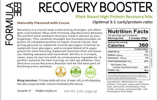 Vegan High Protein Recovery Shake with 20g Protein and 60g Carbs, 100% Natural, Gluten Free Formula 369 Recovery Booster - 3 pounds