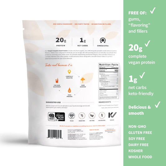 Organic Pumpkin Seed Protein Powder - 20g Plant Based Protein, No Artificial Sweeteners, Non-Dairy, Non-GMO, Vegan, Gluten Free, Keto - 5lb