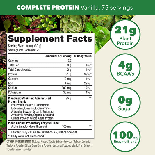 Vanilla Bean PlantFusion Complete Vegan Protein Powder - 5lb Bulk - Plant Based Protein Powder with BCAAs, Digestive Enzymes, Pea Protein - Keto, Gluten Free, Soy Free, Non-Dairy - No Sugar, Non-GMO