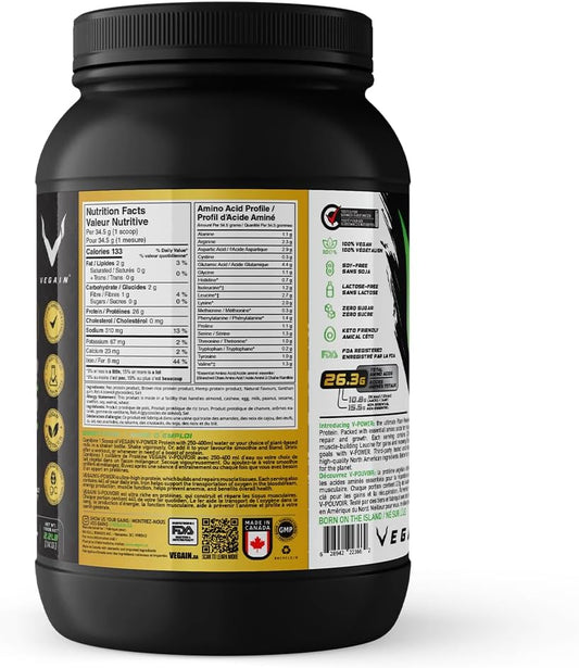 VEGAIN V-Power Plant-Based Protein Powder | 26g Protein, 10.8g BCAAs & EAAs, Zero Fat & Sugars, Dairy & Soy-Free - All Natural - 1kg Strawberries & Cream