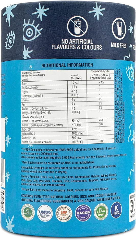 Advanced Eye Care Gummies with Blue Light and Dryness Protection - Lutein, Zeaxanthin, Astaxanthin, DHA, Vitamin A, C, E - Kids & Adults - 30 Gummies
