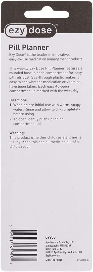 7-Day Pill Organizer with Large Contoured Compartments - EZY DOSE Weekly Medicine Planner for Vitamins - BPA Free, Color Varies - Convenient and Easy to Use