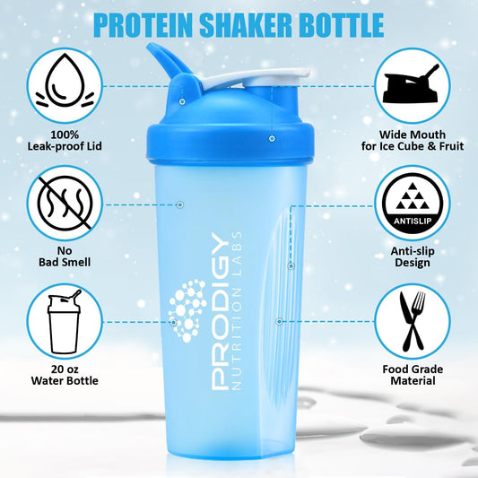 20oz Prodigy Nutrition Labs Protein Shaker Bottle - Ideal for Workout Supplements, Protein Powder, and BCAA'S - BPA-Free - Perfect for Fitness Enthusiasts