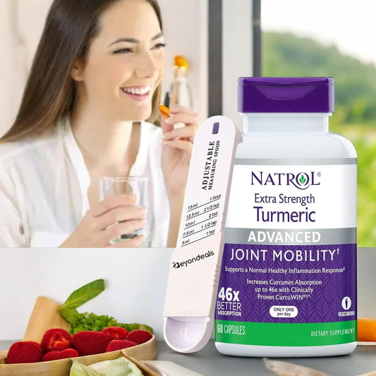 Bundle of Plastic Measuring Spoon Set with Turmeric Capsules for Cellular Support - Pack of 4, Purple Color