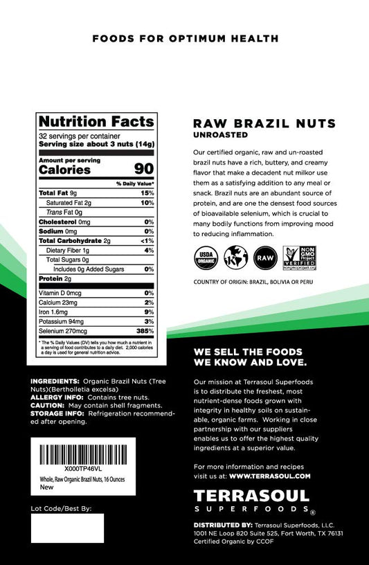 Organic Raw Brazil Nuts - 5lbs (5 Pack) | Unsalted | Selenium-Rich | Terrasoul Superfoods