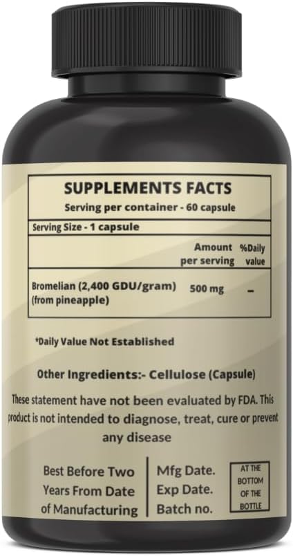 Heroot Bromelain 500mg Capsules - 2400 GDU/gram Enzyme for Joint Health & Digestive Support - Non-GMO & Gluten Free - 60 Count
