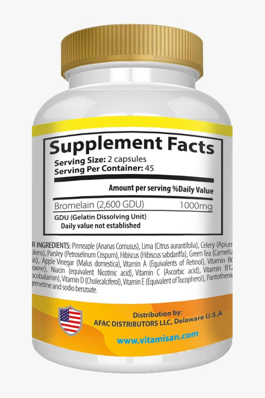 Premium Non-GMO Bromelain Supplement Enzymes from Fresh Pineapple - 90 Capsules by VITAMISAN