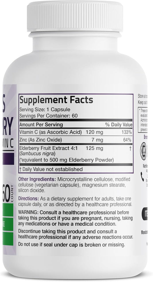 Bronson Sambucus Elderberry Capsules with Zinc & Vitamin C - Immune & Antioxidant Support - Non-GMO - 60 Vegetarian Capsules