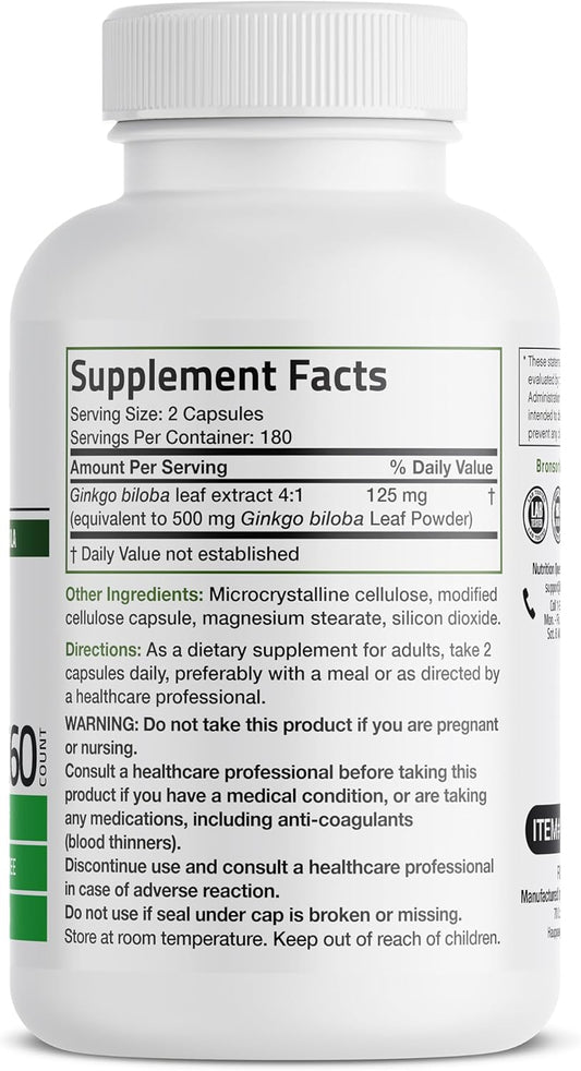 360 Vegetarian Capsules of Bronson Ginkgo Biloba for Enhanced Brain Function and Memory Support