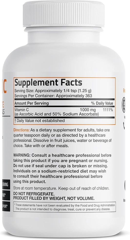 Buffered Vitamin C Powder - 1lb (16oz) - Promotes Immune System Health & Cell Protection - Antioxidant with Sodium Ascorbate
