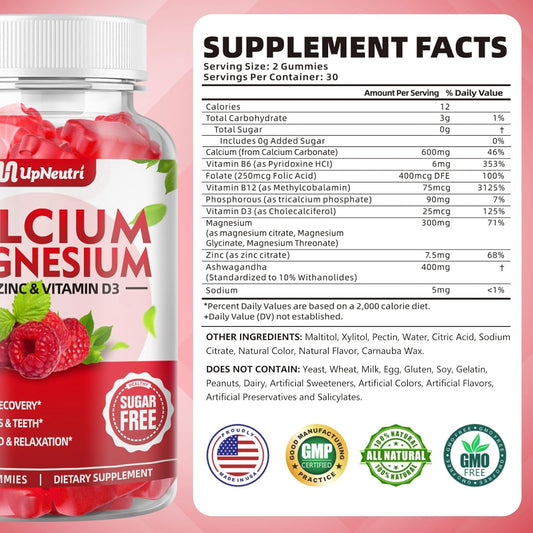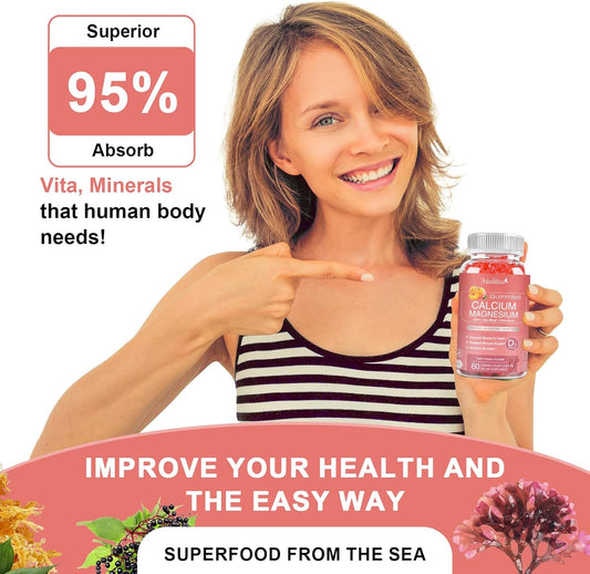 Vegan Calcium Magnesium Zinc Gummies with Vitamin D3 for Bone & Muscle Health - 120 Count