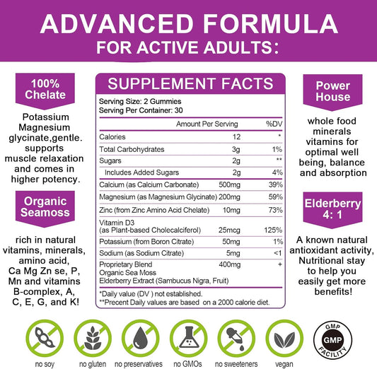 High Absorption Multivitamin Gummies with Calcium, Magnesium, Zinc, Potassium, D3 & Sea Moss for Bone, Muscle, Mood & Sleep Support - Adults & Kids - 1 Pack