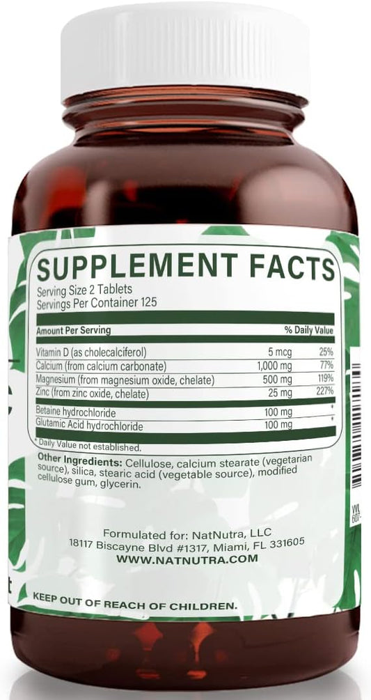 Natural Nutra Bone Strength Supplement with Calcium, Magnesium, Zinc, and Vitamin D3 - Gluten and Sugar-Free Essential Mineral Complex - 1000/500/25 mg (250 Count)