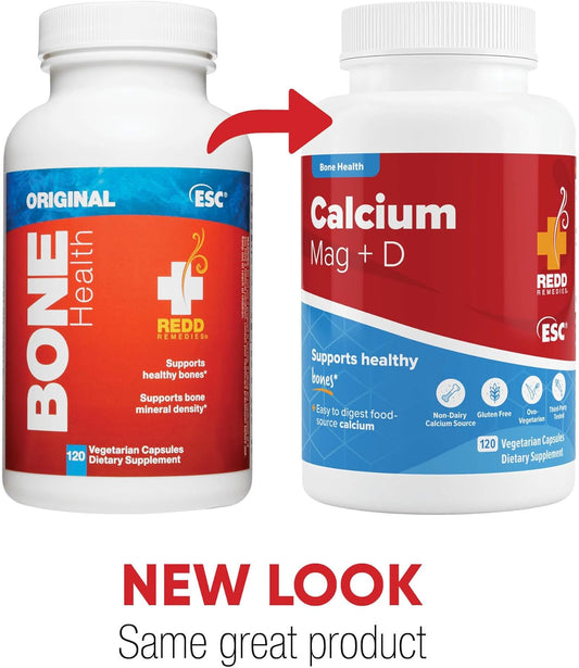 Redd Remedies Bone Health Original Supplement with Vitamin D3 and Calcium - 120 Vegetarian Capsules for Strong Bones