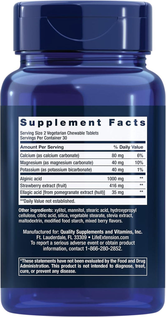 Long-Lasting Relief from Gastric Distress - Esophageal Guardian with Alginic Acid and Potassium Bicarbonate - Vegetarian, Non-GMO, Gluten-Free - 60 Chewable Tablets