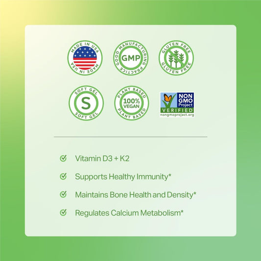 Pure Synergy D3 + K2 Softgels with Organic Coconut Oil for Bone and Circulatory Health - Made in USA - Non-GMO - 60 Capsules