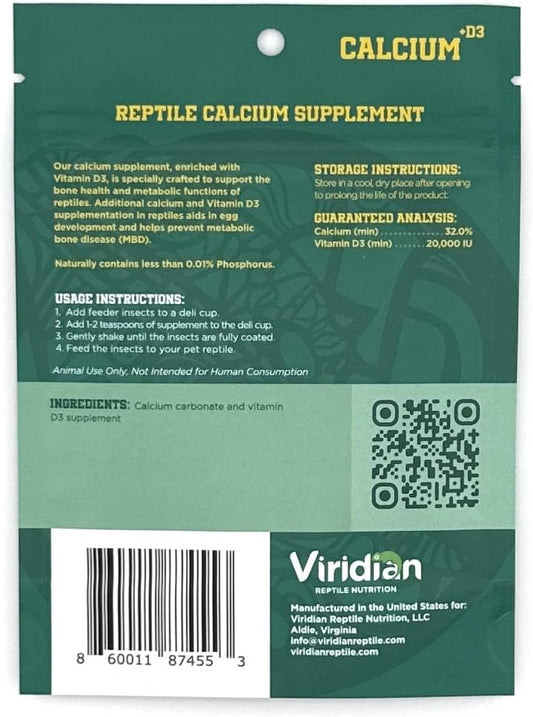 Viridian Reptile Calcium Supplement with D3 - 10 Ounces for Reptile Nutrition