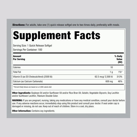 Lindberg Calcium + Vitamin D3 Softgels for Women & Men - 600 mg, 100 ct - Non-GMO, Gluten Free - Quick Release Formula