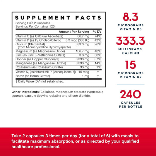 Jarrow Formulas BoneUp - 2 Packs of 240 Capsules - Micronutrient Formula for Bone Health with Vitamin D3, K2, and Calcium - 240 Servings