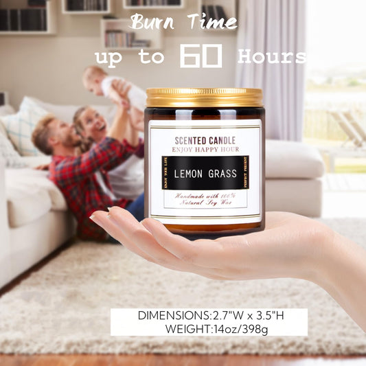Premium Lemon Grass Scented Soy Wax Aromatherapy Candles - Stress Relief, Meditation, Yoga, Relaxing | Natural Jar Candles for Home, Office, Men, Women | SPA Essentials