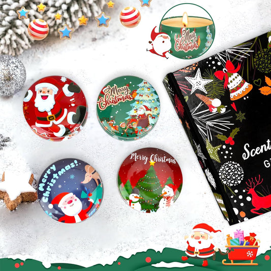 4 Pc Christmas Scented Candle Gift Set for Women - Merry Xmas Soy Wax Aromatherapy Candles in Cookie Jar Tins with Lids for Home, Bath, Yoga & Holiday Party Favors