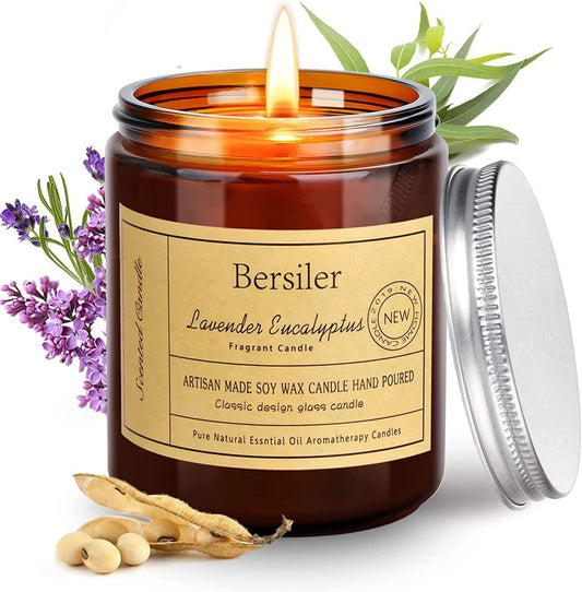 Bersiler Lavender Eucalyptus and Sage Sea Salt Aromatherapy Candles for Stress Relief and Relaxation - Great Gift for Women and Men