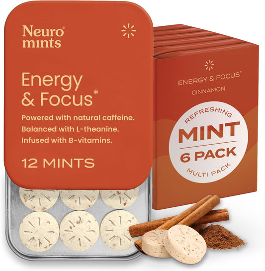 Sugar-Free NeuroGum Energy Mints (72 Pieces) with L-Theanine, Natural Caffeine, Vitamin B12 & B6 - Nootropic Energy Boost for Men & Women