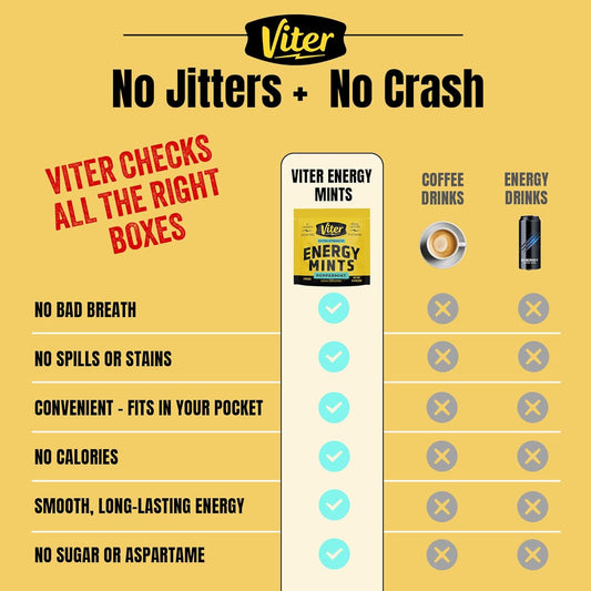 Viter Energy Caffeine Mints 80mg Extra Strength - 90 Pieces with B Vitamins. Sugar Free Vegan Mint for Energy Boost and Focus. Peppermint Flavor, 30 Pack.
