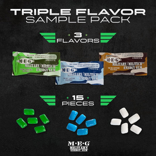 Military Energy Gum - 15-Piece Sample Pack with 100mg Caffeine Per Piece for Enhanced Energy and Focus