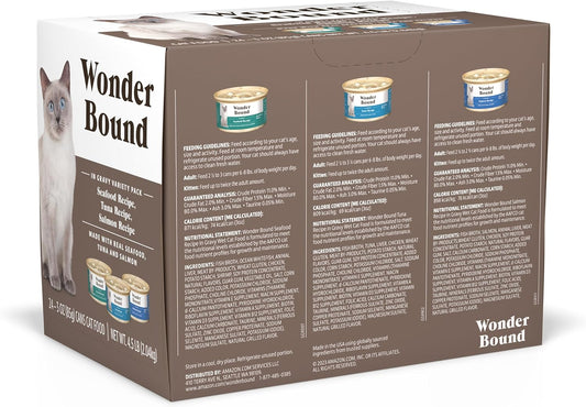 Wonder Bound Wet Cat Food Variety Pack, Pate - Grain-Free, 3 oz cans (Pack of 24) - Cod, Sole & Shrimp, Salmon, White Fish & Tuna