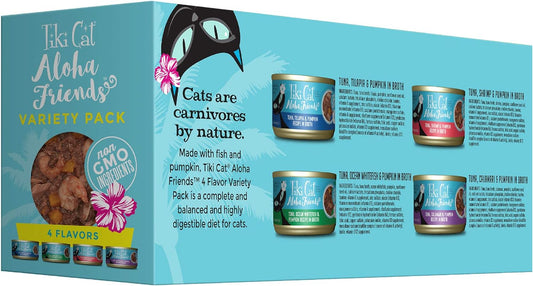 TIKI PETS Tiki Cat Aloha Friends Variety Pack - Seafood Flavors with Pumpkin - 3 oz. Cans (12 Pack) - High-Protein & High-Moisture Cat Food for All Life Stages