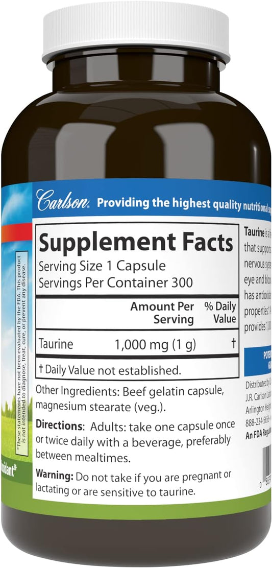 Carlson Taurine Free-Form Amino Acid Capsules for Nerve Health & Muscle Function - 300 Count