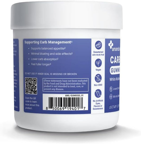 Ananda Wellness Carb Blocking Gummy with White Mulberry and Saffron, Metabolism & Energy Support, Blood Glucose Levels, Sugar Free, Orange - 30 Count