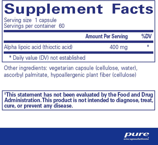 Alpha Lipoic Acid 400mg Capsules - Liver, Nerve, Cardiovascular Health - Antioxidant Supplement for Free Radicals - Supports Carbohydrate Metabolism - 60 Count
